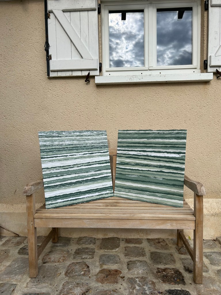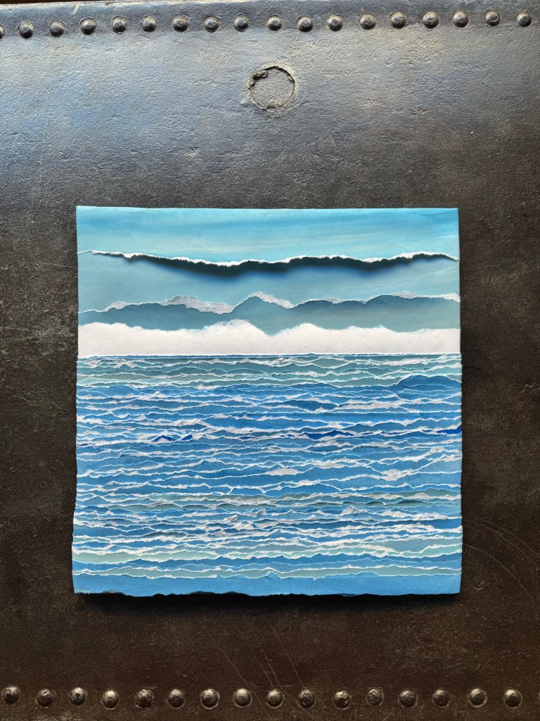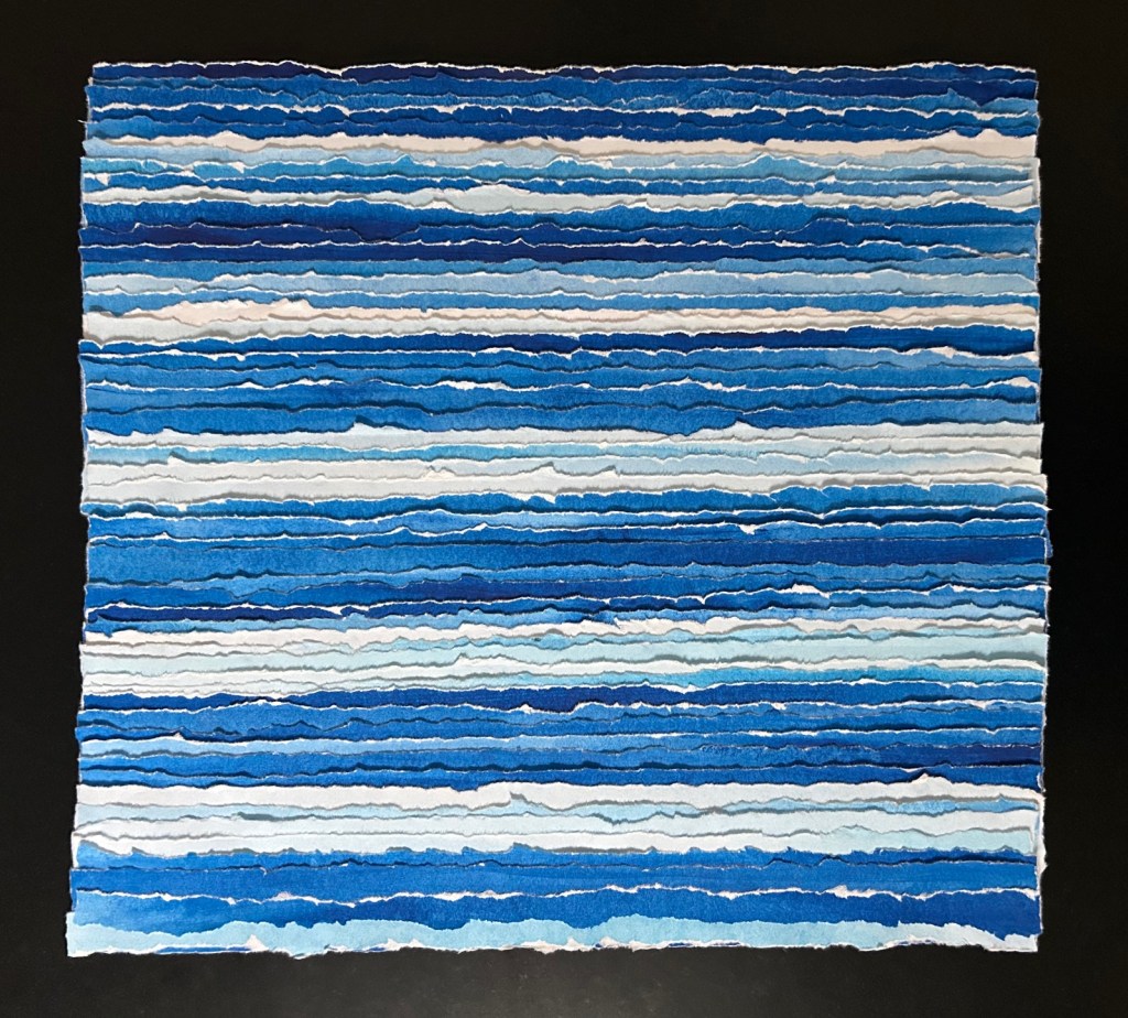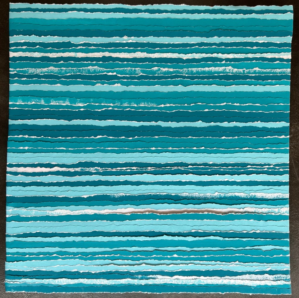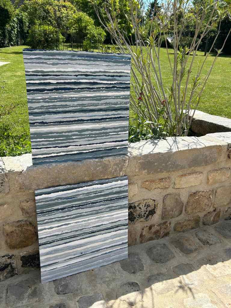 papier épais peint puis déchiré en lanières – sur panneau de bois