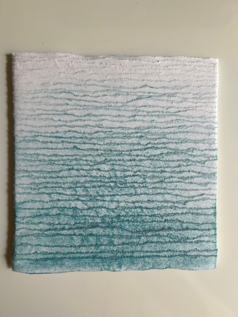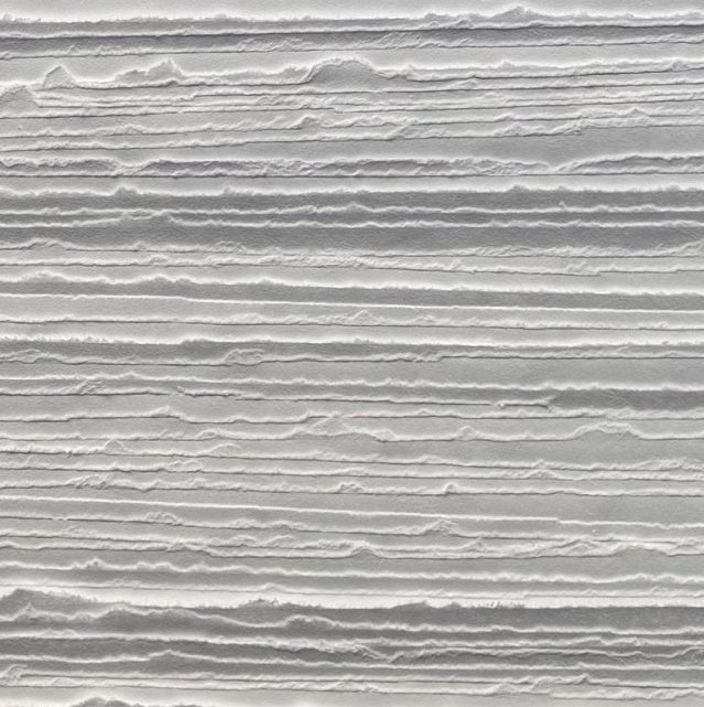 lanières de papier épais déchiré puis coloré – sur panneau de bois