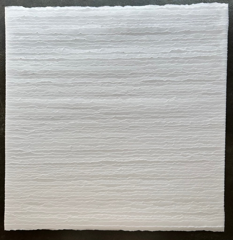 papier épais déchiré en lanières – sur panneau de bois
